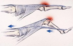 When the deformity has just occurred the PIP joint cannot be straightened on its own, but can be straightened using the other hand.  In a long standing central slip injury the joint may become stiff and fixed in the bent position,