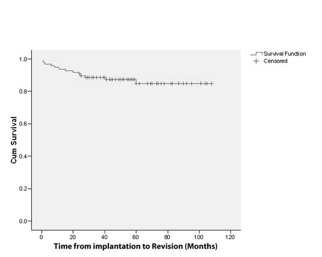 · Reasons for revision were; Instability (7%) Aseptic loosening (3%) stiffness (2%) and infection (1%).